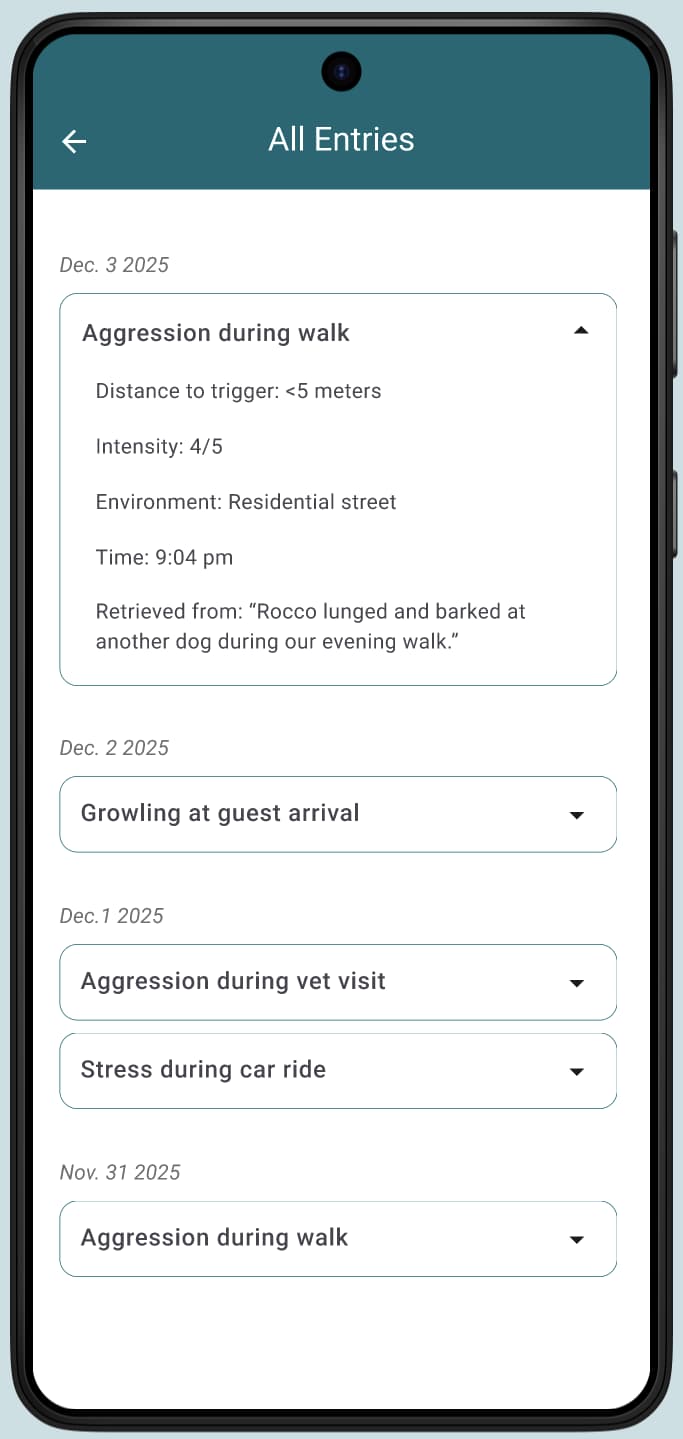 I interviewed several dog trainers to understand how they work with owners and what information they keep track of.